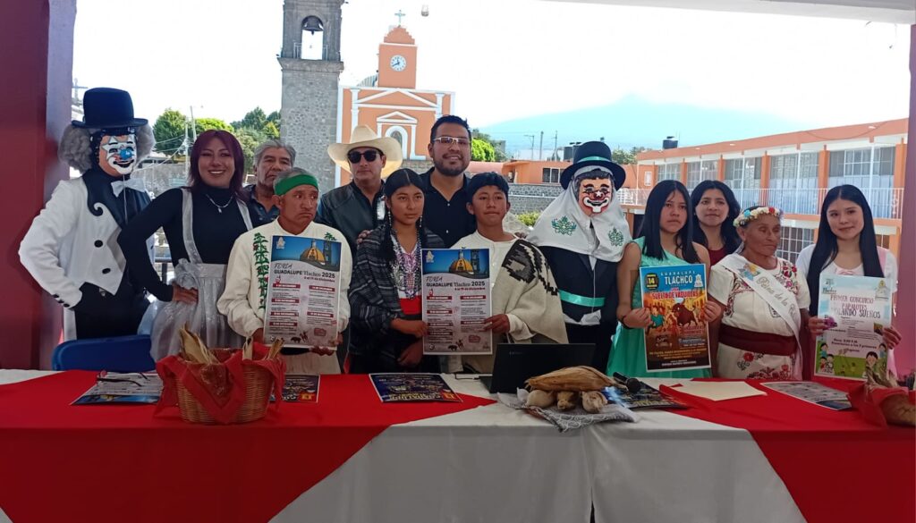 En conferencia de prensa, el presidente de comunidad de Guadalupe Tlachco, Enrique Bautista Hernández acompañado por la regidora de turismo Andrea López Acoltzi y el mayordomo de la Virgen de Guadalupe, Auriberto Muñoz, dieron a conocer el programa de feria Guadalupe Tlachco 2025.