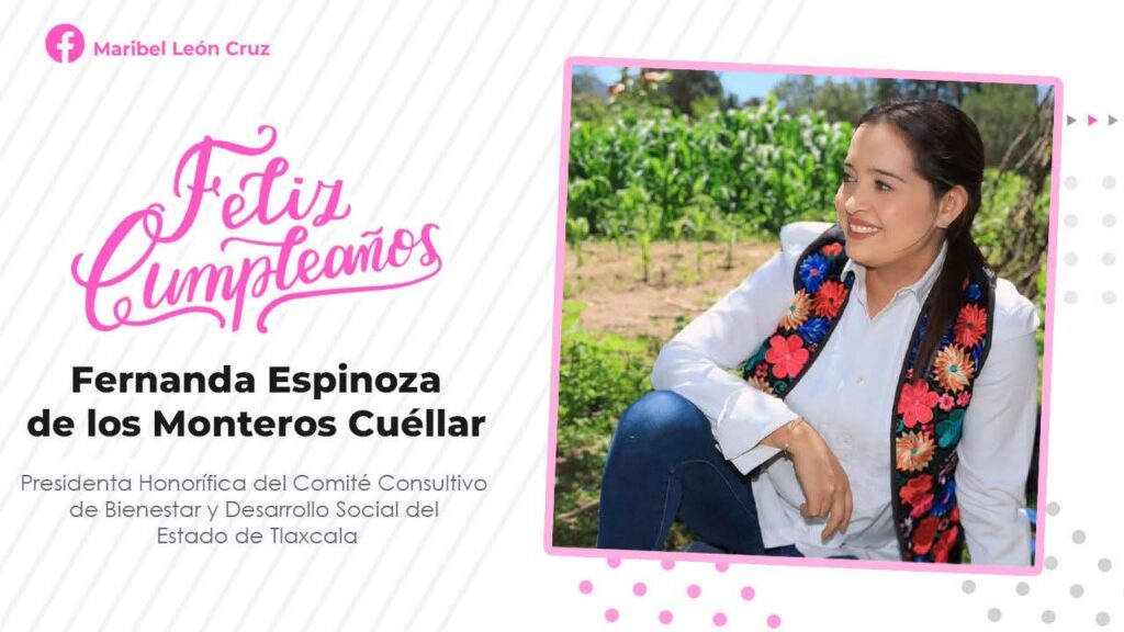 A través de sus redes sociales, la legisladora local comentó: Envío una gran felicitación a la Presidenta Honorifica del Comité Consultivo de Bienestar y Desarrollo Social, Fernanda Espinosa de los Monteros Cuéllar, con motivo de su cumpleaños. ¡Felicidades! 🎂